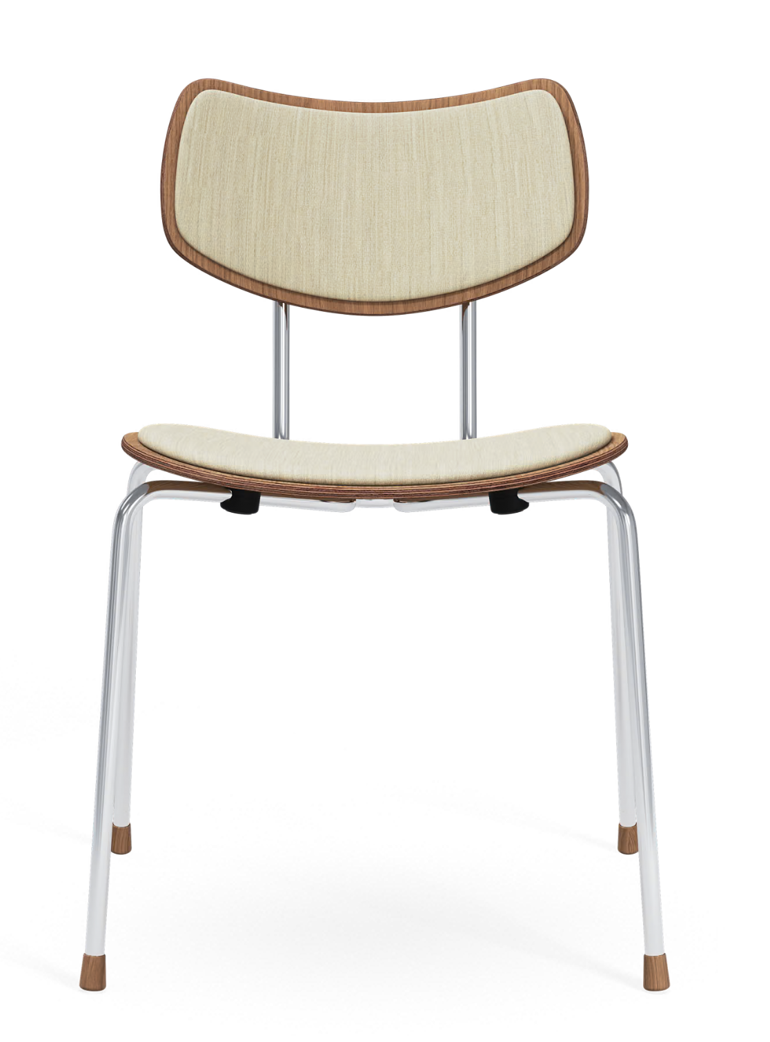 El respatller corbat de forma ergonòmica abraça l’usuari, mentre que el seient entapissat (en teixits com Gabriel Mood o cuir Nordics Swan ecolabel) ofereix suavitat i transpirabilitat. Per tant, aquesta cadira resulta ideal per a estades llargues, conferències o menjadors exigents.