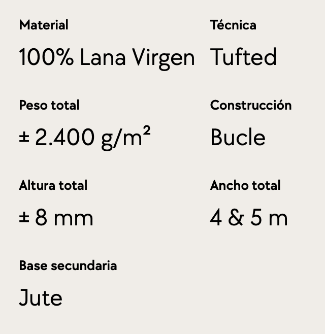 D’altra banda, el seu acabat acurat i la seva resistència fan que la catifa Llevant no només sigui estèticament atractiva, sinó també pràctica i duradora. Per tant, és una elecció intel·ligent per a qui vol combinar estil i funcionalitat, amb una aposta clara per la sostenibilitat.