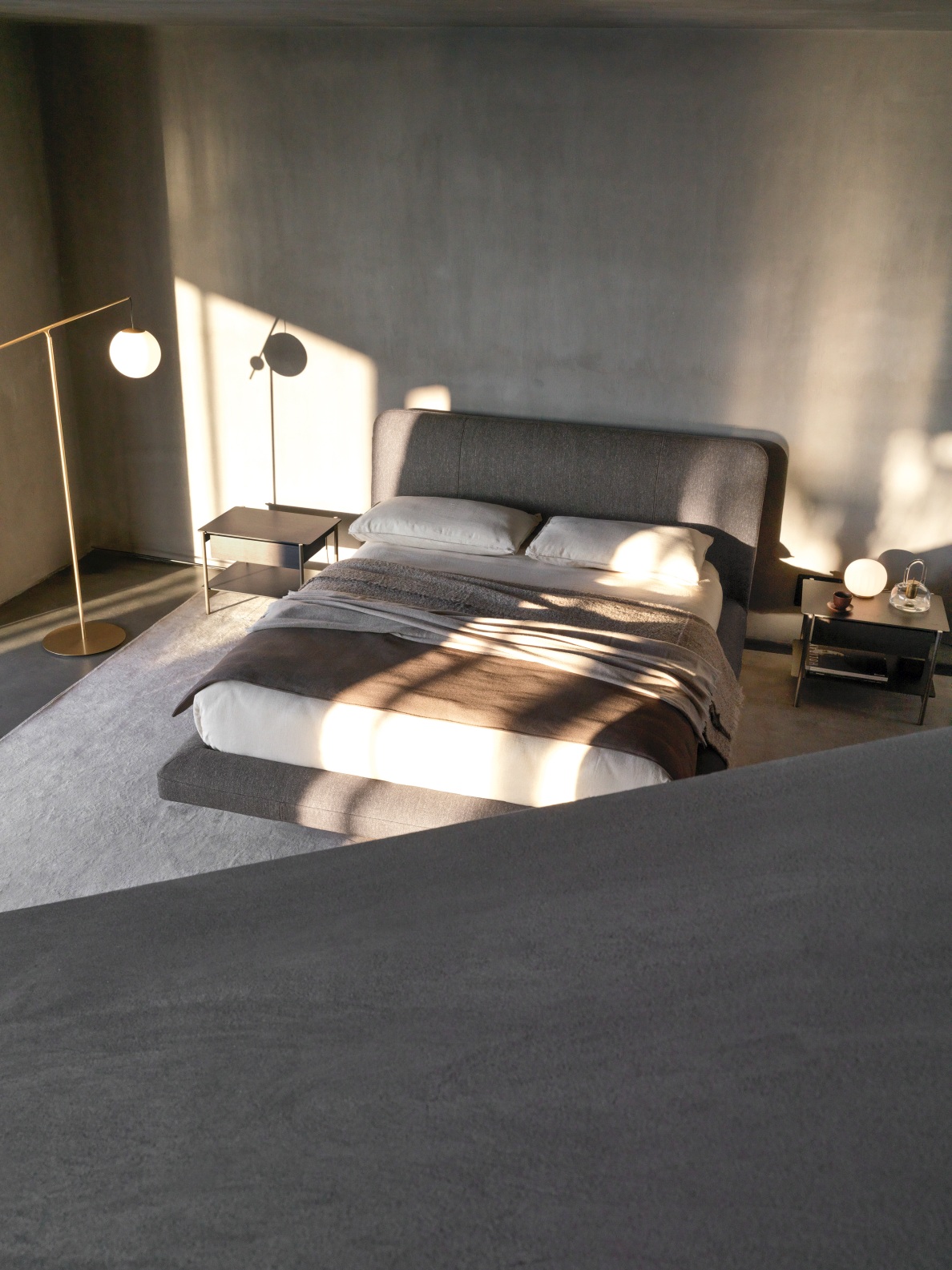 El llit Avalon Ditre Italia, dissenyat per Gabriele & Oscar Buratti, combina formes suaves i corbes aparentment senzilles. El resultat ofereix impacte visual i funcionalitat.
