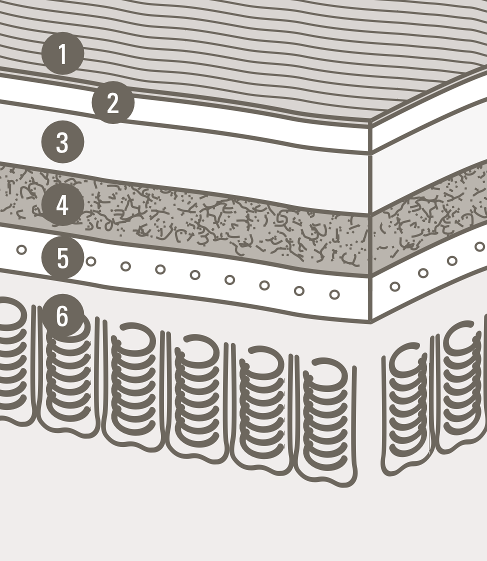 Aquest matalàs ofereix dues cares: una fresca per als mesos càlids (cotó) i una altra càlida per als mesos freds (llana de camell), de manera que proporciona una climatització natural optimitzada durant tot l’any.