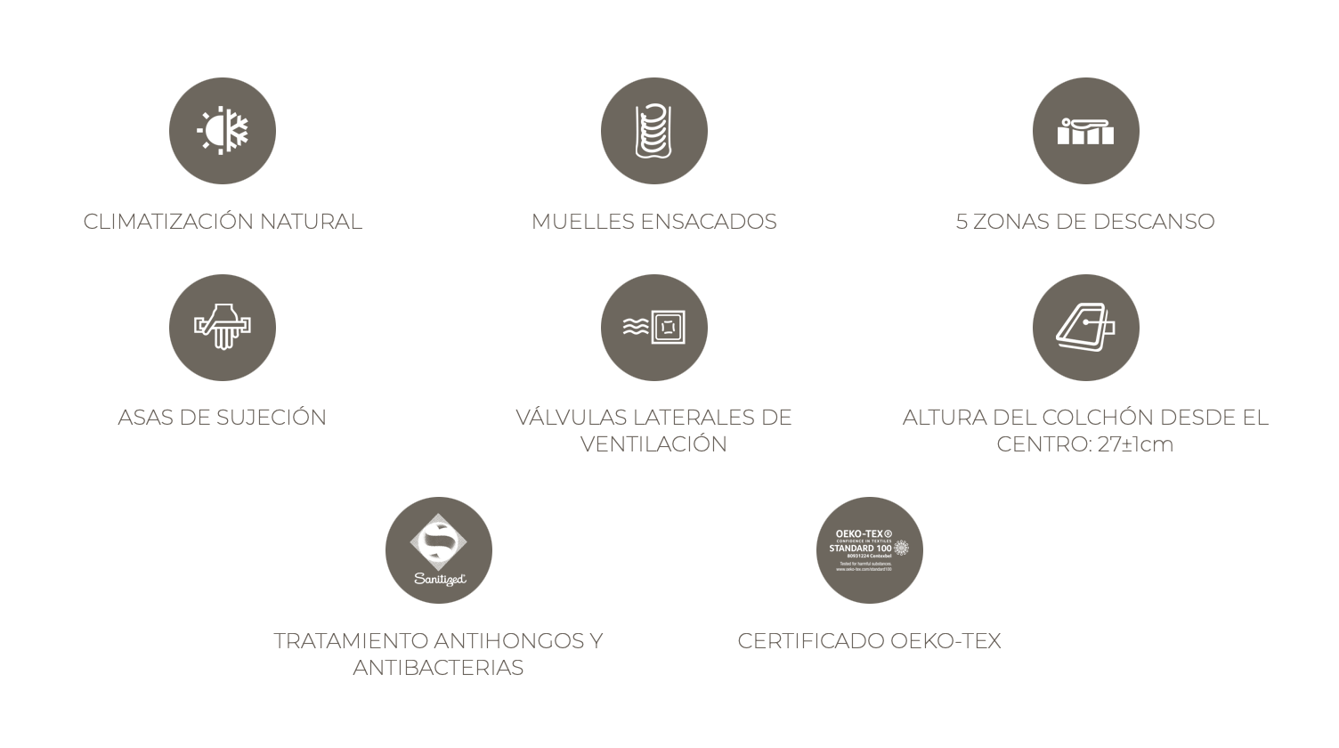 Finalment, té una alçada de 27 cm ±1 cm, és reversible amb cares d’ús per a estiu i hivern, i inclou tractament antiàcars i antibacterià, així com certificació OEKO-TEX®, assegurant un entorn saludable per al descans.
