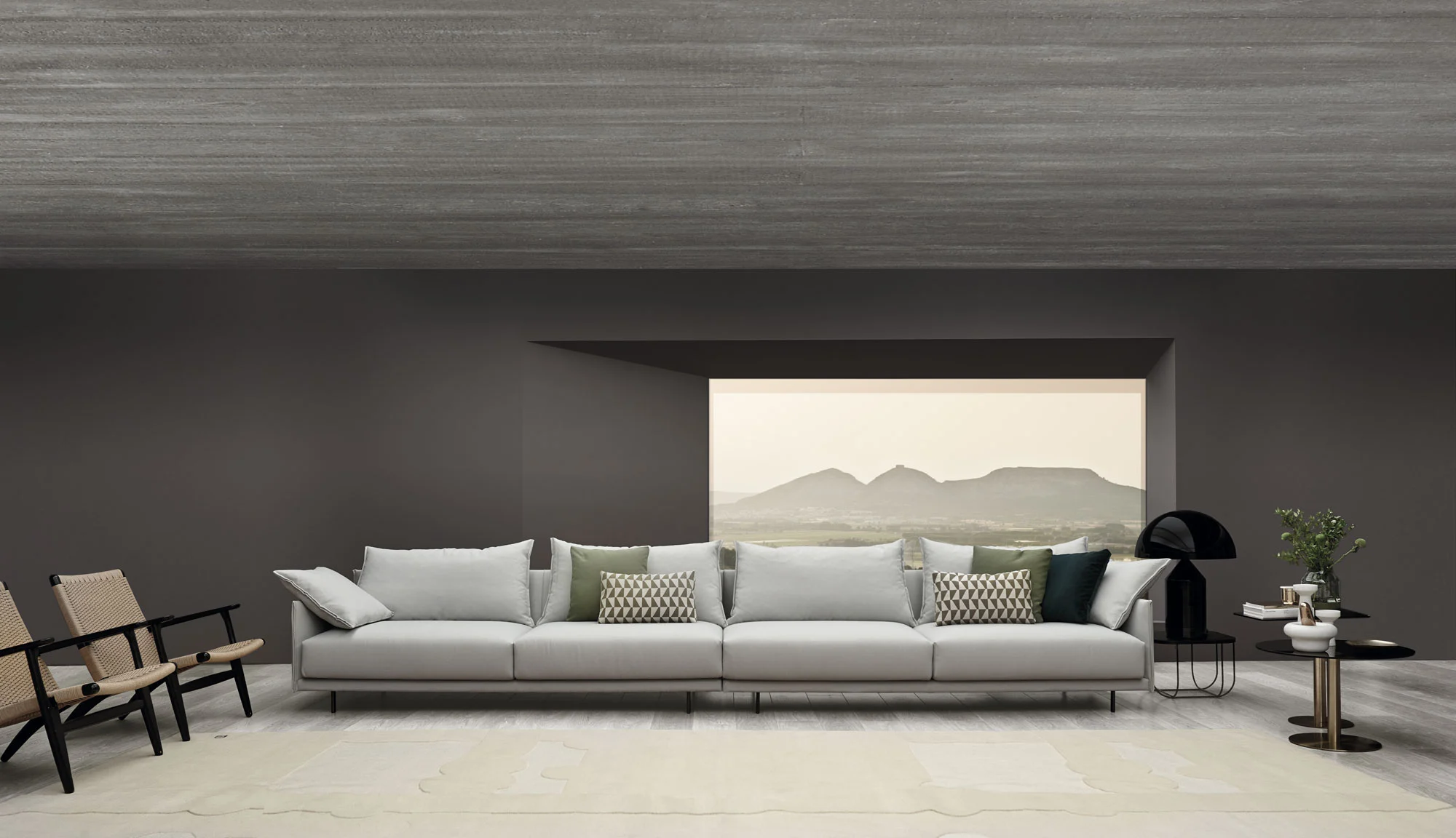 Aquest sofà destaca per la seva estètica depurada i contemporània, amb un braç baix que aporta lleugeresa i permet una connexió visual fluida amb l’entorn. Gràcies a la seva modularitat, s’adapta a qualsevol espai i necessitat, aconseguint configuracions personalitzades que reflecteixen el teu estil.